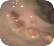 Endoscope picture of typical upper-wall ulcers – courtesy Dr Tim Brazil
